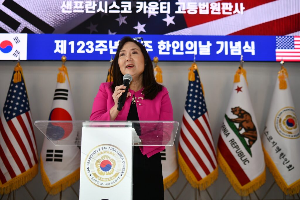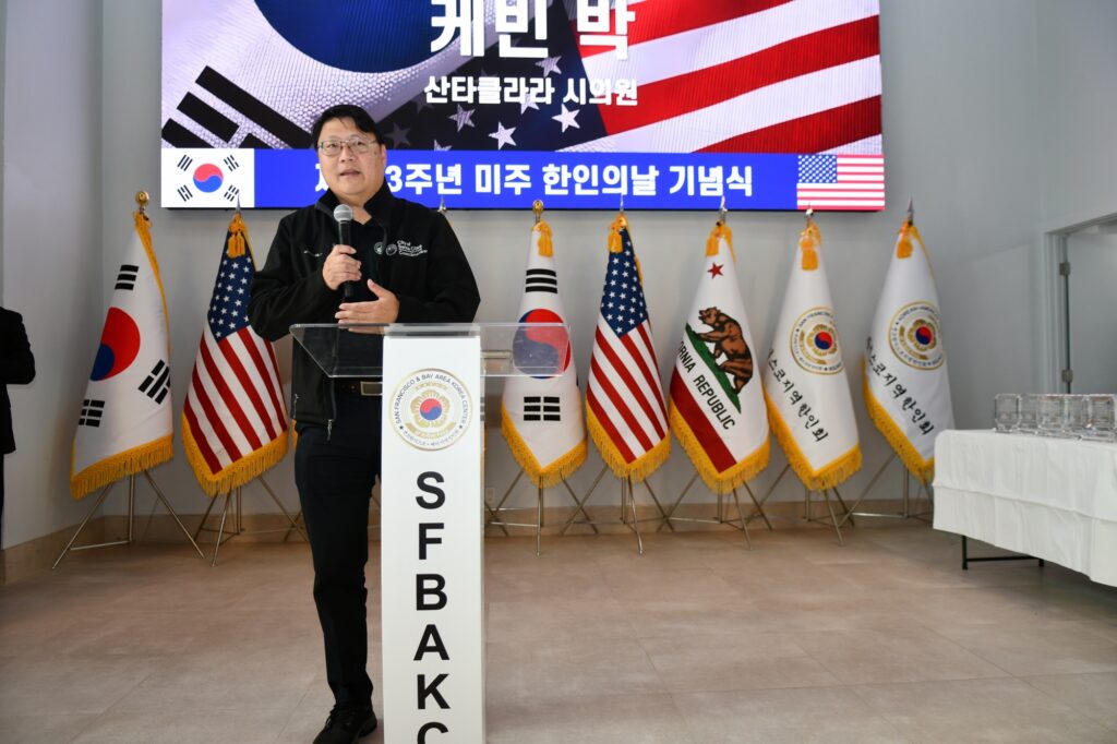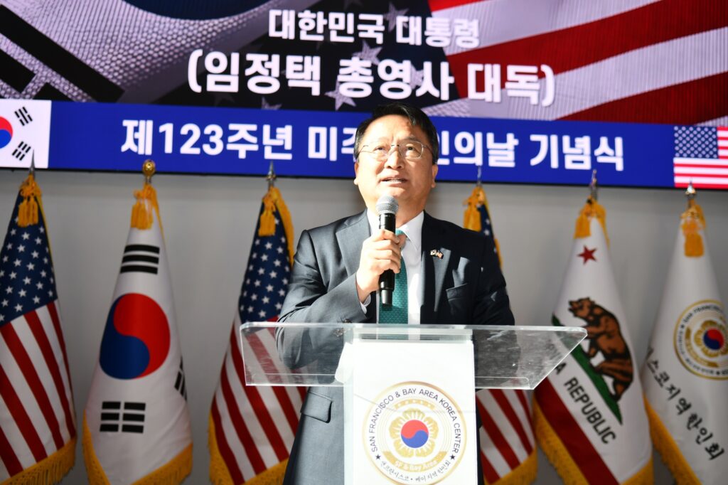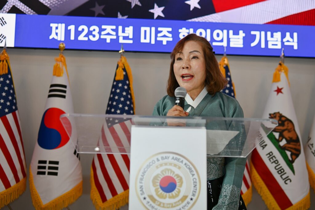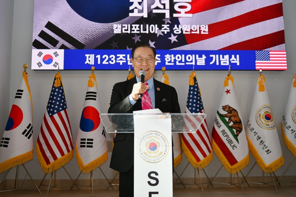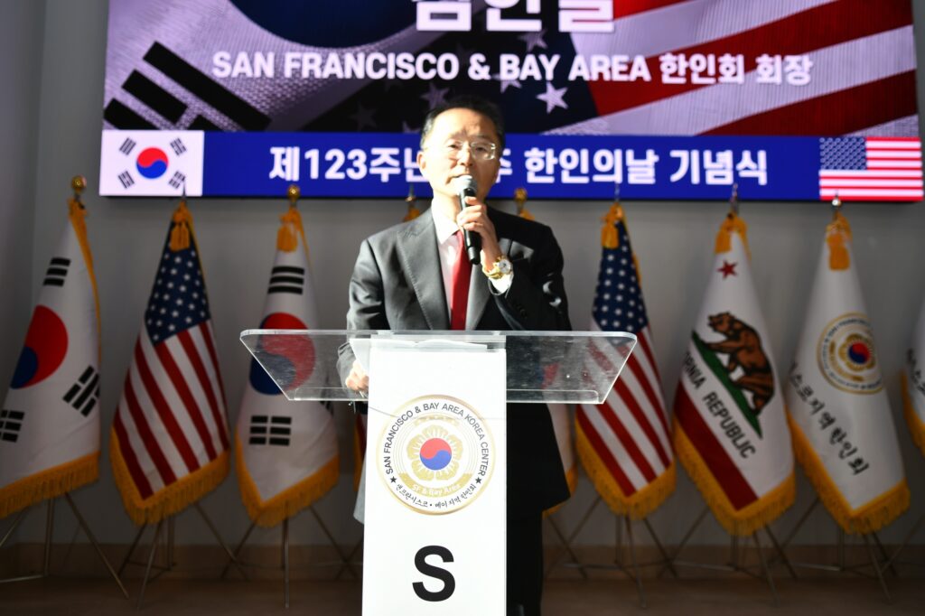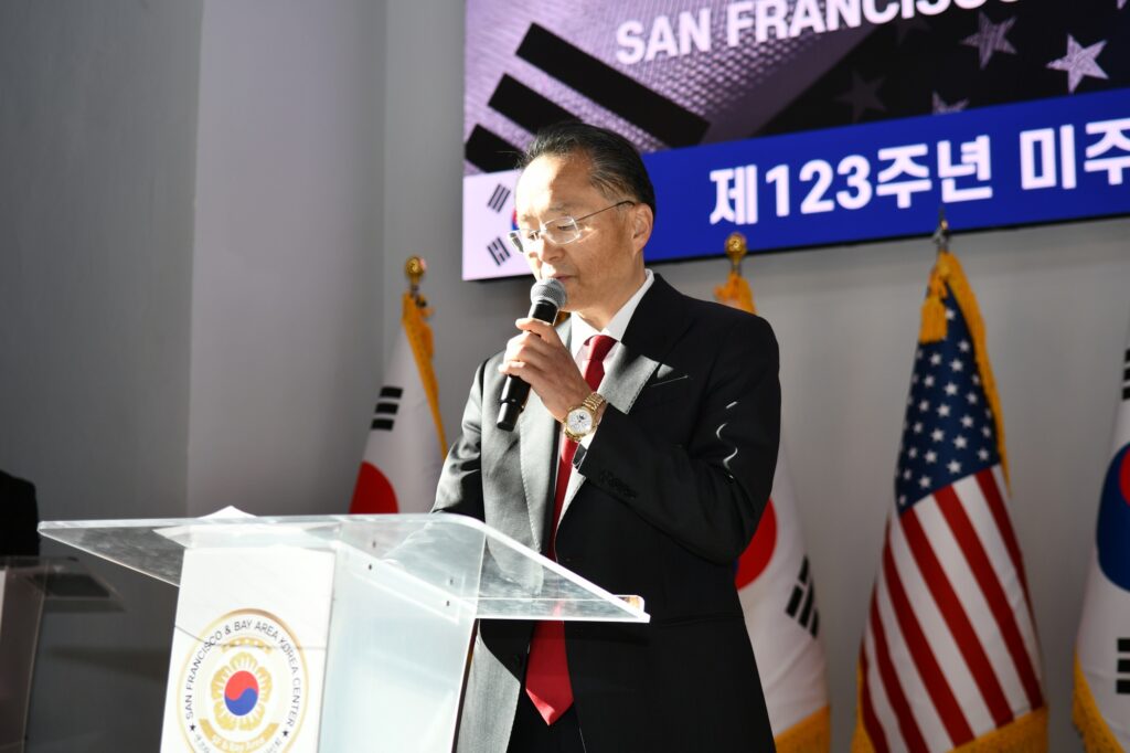 김한일 회장의 환영사로 시작된 제123주년 미주한인의 날 기념식은 대한민국 이재명 대통령(대독 임정택 총영사)과 도널드 트럼프 미국대통령의 축하서신과 AI 도산 안창호 선생, AI 유일한 박사, 최석호 상원의원, 마리사 천샌프란시스코 카운티 고등법원 판사, 케빈 박 산타클라라 시의원, 오미자 평통회장, 이진희 미주총연 부회장의 축사, 한인 최초 이민자들의 삶 “하와이로 간 조선인들” 특별영상 시청과 함께 초기 이민자의 삶을 되돌아보고 현재의 한국의 위상과 한국 이민자의 삶을 조명하며 축하했다.